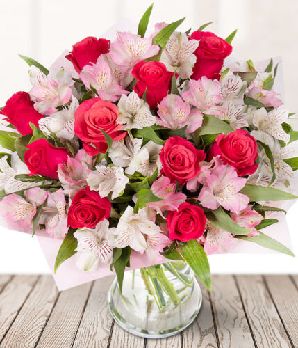 Pretty pastel pink and white alstroemeria paired with striking pink aqua roses. A timeless yet affordable bouquet that exudes elegance and grace. Delivered in bud for longevity, these unbeatably priced blooms promise to unfold their magic gradually after reaching the lucky recipient’s vase. Sent in our signature Eflorist box for safe transit, this bouquet is sure to enchant the recipient from the moment they open it. Enjoy our nationwide delivery and know exactly when the flowers are delivered with tracked delivery.