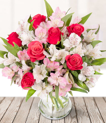 Pretty pastel pink and white alstroemeria paired with striking pink aqua roses. A timeless yet affordable bouquet that exudes elegance and grace. Delivered in bud for longevity, these unbeatably priced blooms promise to unfold their magic gradually after reaching the lucky recipient’s vase. Sent in our signature Eflorist box for safe transit, this bouquet is sure to enchant the recipient from the moment they open it. Enjoy our nationwide delivery and know exactly when the flowers are delivered with tracked delivery.