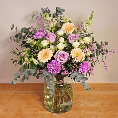 Featuring Chrysanthemum, Freesia and Roses this is a gloriously wild and wonderful bouquet with delicate textures and pastel shades, making it perfect for any special occasion. This bouquet will be handcrafted by an experienced florist, order for same day delivery by hand, or next day delivery via our courier.