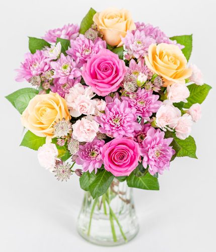 A beautiful mix of pink and cream roses, chrysanthemums, and spray carnations, complemented with delicate foliage. Sent in a protective Eflorist box, the bouquet arrives safely and offers a delightful unboxing experience. Your super-fresh flowers will arrive in bud, ready to transform in front of your lucky recipient within 48 hours from delivery, all with tracked delivery and nationwide coverage giving you peace of mind. Enjoy great value flowers without sacrificing quality.