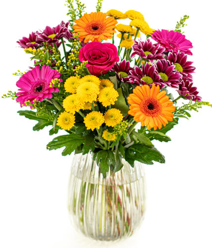 Sweet Autumn contains a mix of pink and orange germini, spray chrysanthemums complemented by a cerise rose that takes centre stage in this bouquet. Sent in a protective Eflorist box, this bouquet arrives in bud to ensure lasting freshness for the lucky recipient. With just a splash of water and our included flower food, the blooms will gracefully open up within two days. And with tracked delivery, you can relax knowing exactly when your surprise is delivered. These flowers are a great inexpensive way to brighten up every occasion.