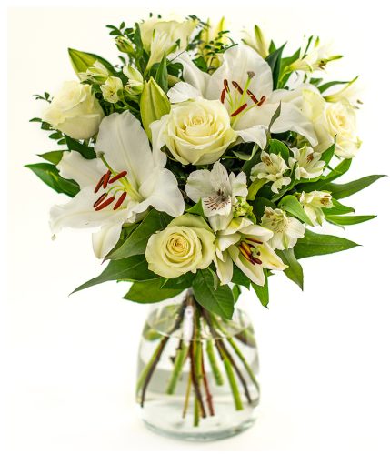 The Orient is a classic white arrangement full of fragrant white oriental lilies, white roses and alstroemeria, complemented perfectly by the freshest seasonal foliage. Sent in a special Eflorist box designed to protect the stems and provide a pleasant unboxing experience. The flowers arrive in bud, and with just a splash of water and our included flower food, the blooms will gradually open up within two days, revealing their beautiful final form. And with tracked delivery, you can track the progress of your vibrant bouquet, knowing exactly when the surprise reaches your loved one. Emotions that cannot be described, at a price you will love.